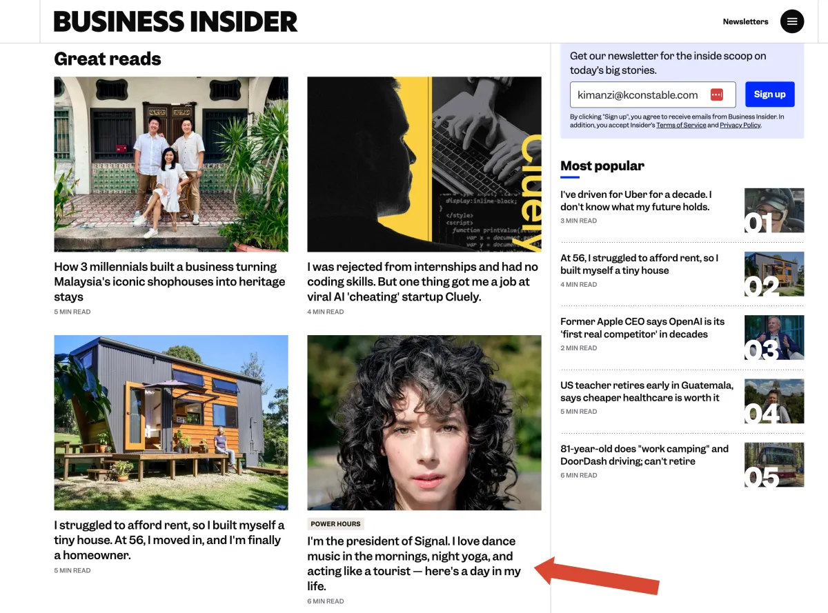 Look at who you'd reach at Business Insider (screenshot above). Imagine what this would do for your business and revenue with that kind of visibility and credibility