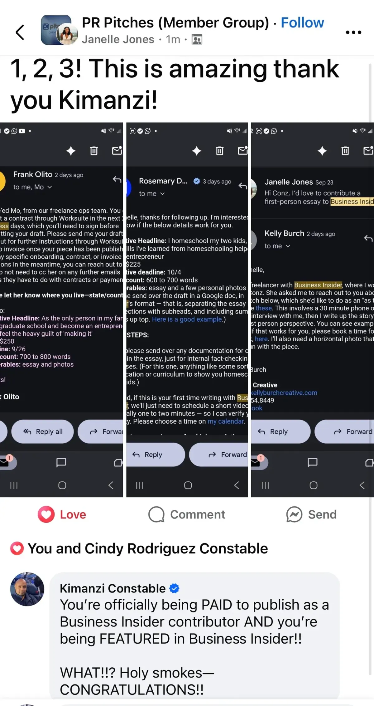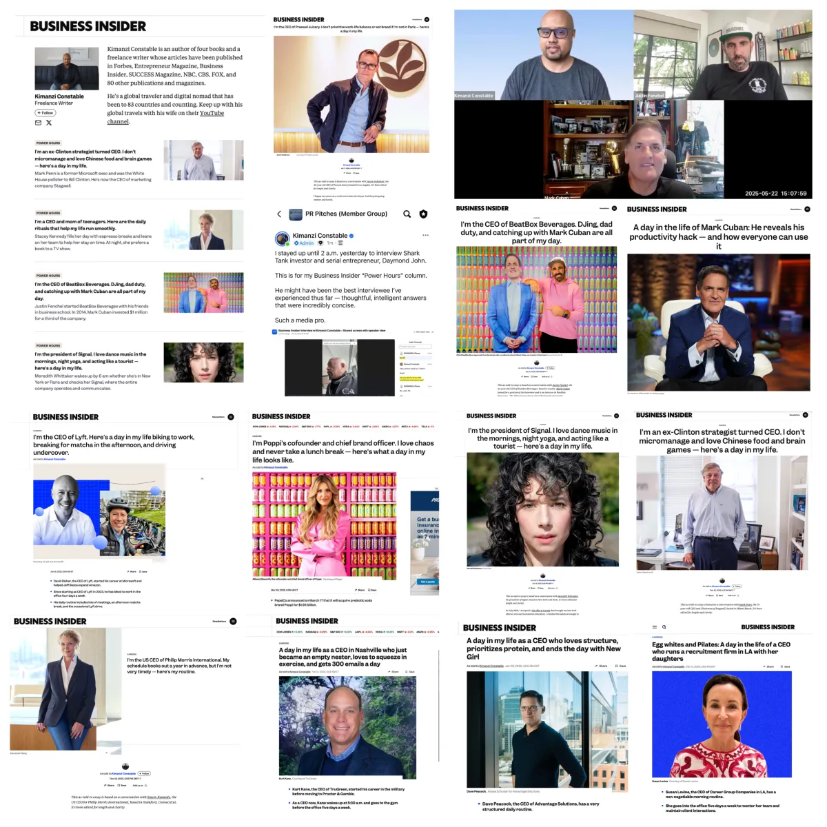 You can see my articles in Business Insider (five-year contributor), Inc. Magazine, Forbes, Entrepreneur Magazine, SUCCESS Magazine, NBC, CBS, FOX Business, Essence, Fast Company, Fortune, CNET, Lifehacker, Wall Street Journal, New York Post, and 80 other publications and magazines.